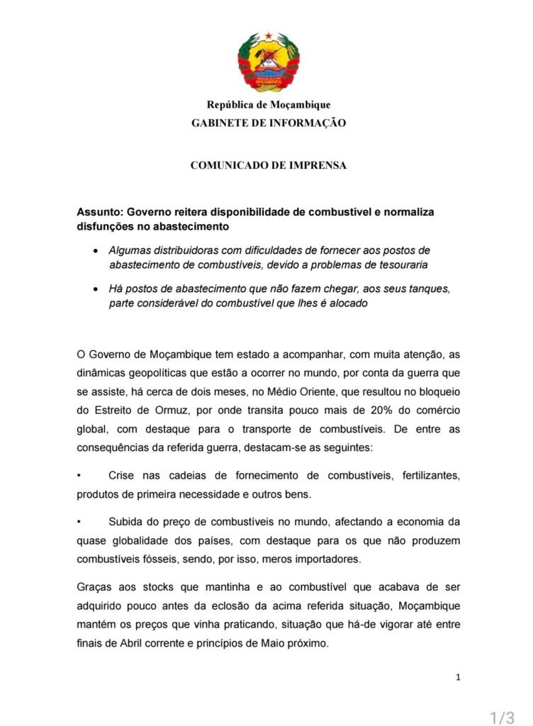 O comunicado indica também que os preços actuais poderão manter-se apenas até finais de Abril ou início de Maio, sendo esperada uma nova actualização devido ao aumento dos preços internacionais, influenciados pela instabilidade no Médio Oriente.
