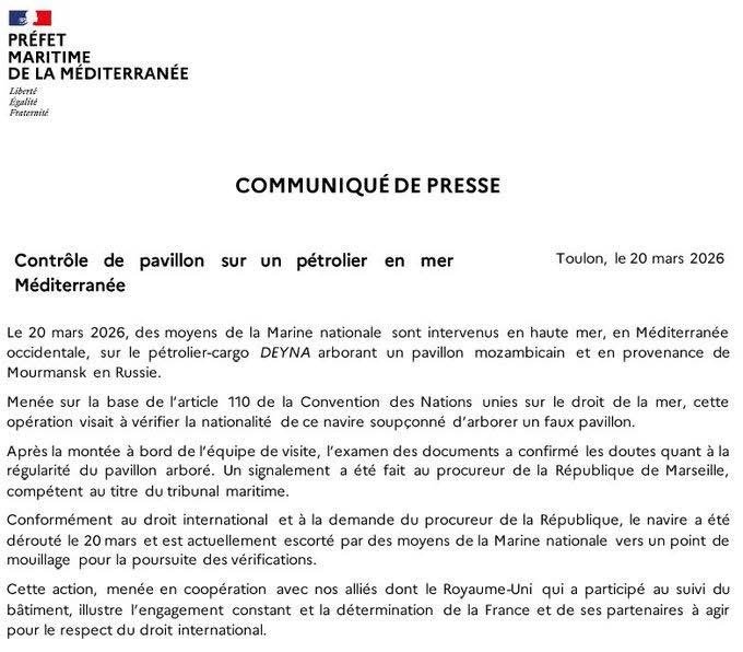Uma operação discreta no Mediterrâneo Ocidental transformou-se, em poucas horas, num caso com implicações que ultrapassam fronteiras. Um petroleiro identificado como DEYNA, que navegava com bandeira moçambicana, foi abordado por forças navais da França após sinais considerados anómalos pelos sistemas de monitorização marítima.
