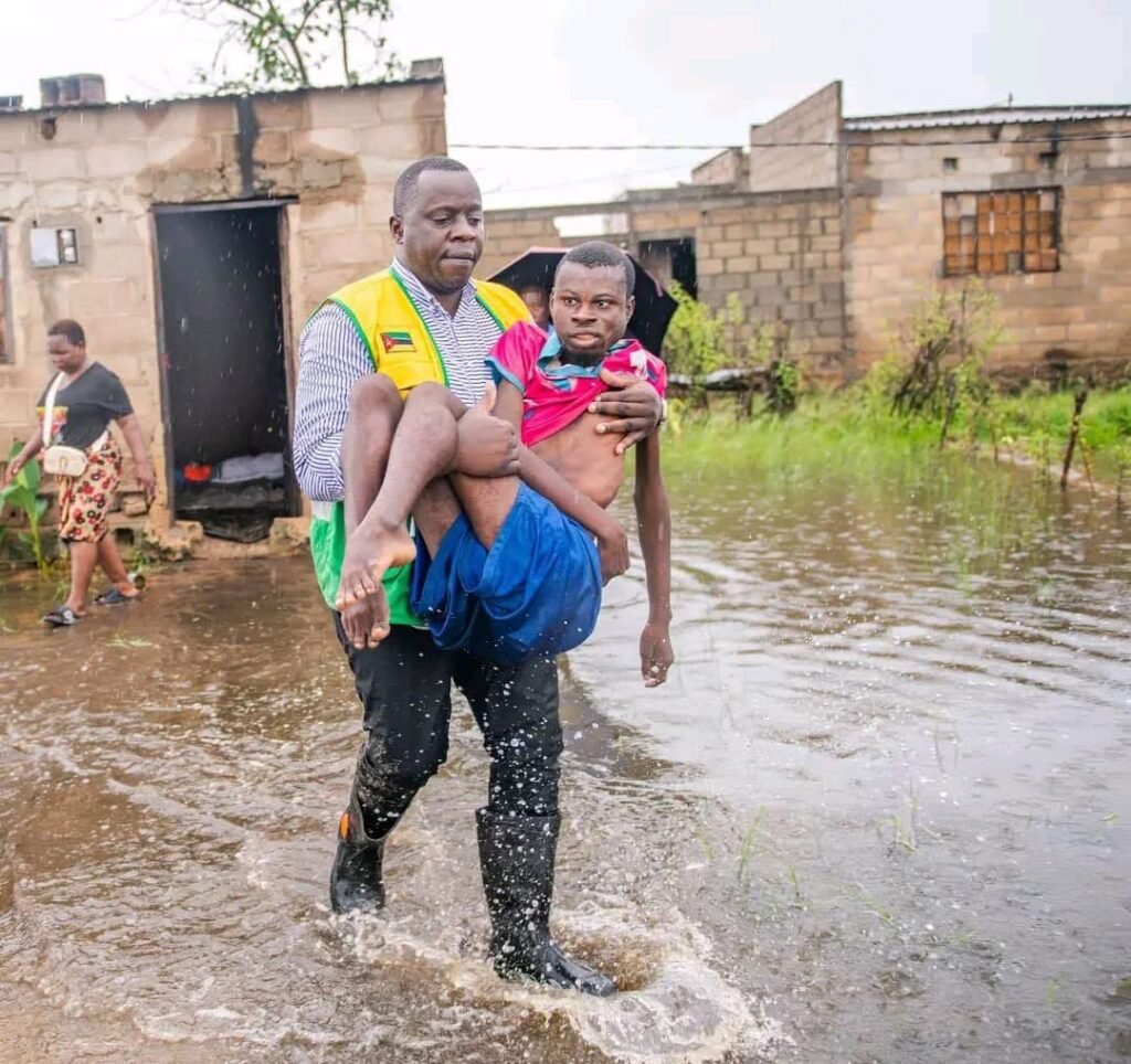 Matola – O presidente do Conselho Municipal da Matola, Júlio Parruque, está no terreno a monitorar e liderar ações de resgate de famílias cujas residências se encontram inundadas, na sequência das chuvas intensas que afectam vários bairros do município.
