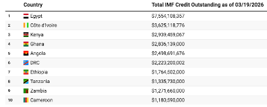Os dados mais recentes do Fundo Monetário Internacional revelam os dez países africanos com maior nível de endividamento junto da instituição até Março, num cenário que continua a gerar preocupação quanto à sustentabilidade das economias do continente.